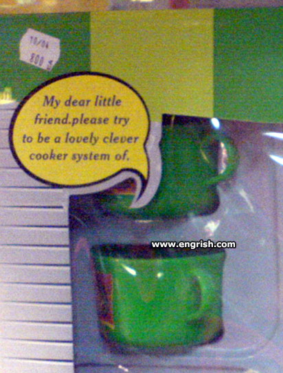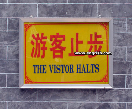 Chinglish is a commonly used term for Chinese Engrish from China, Taiwan, and Hong Kong. Examples are for the most part mistranslated signs and products. Although not as creative as Engrish from Japan, Chinglish can be quite entertaining!