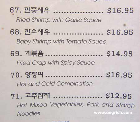 Menu from Korean/Chinese restaurant in US.