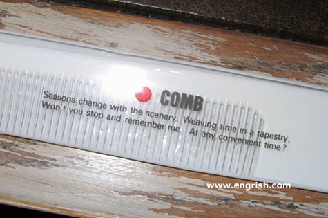 Hey wait, these are Simon & Garfunkel lyrics! They make perfect sense, just not on a comb. This snippet is from “A Hazy Shade of Winter”.