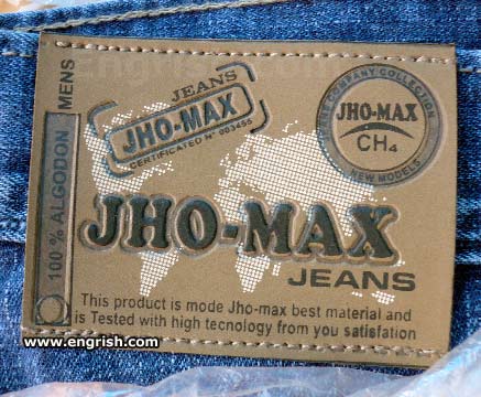 Our high tecnology enables us to recycle farts into pants. Just remember to keep your Jho-Max jeans away from ignition sources.