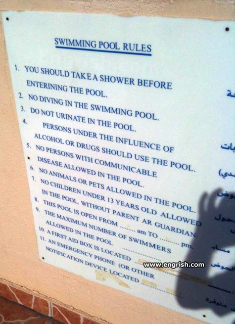 Drunks allowed in the pool from ……………………..am to ……………………pm.