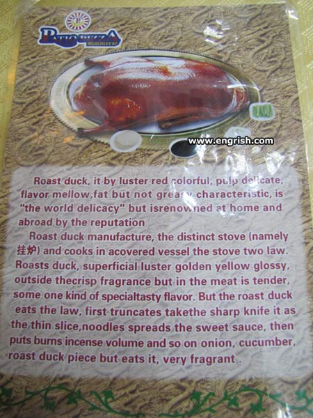 The distinct stove makes superficial golden luster. So they roast their ducks on tanning beds? No wonder they’re poorly cooked!