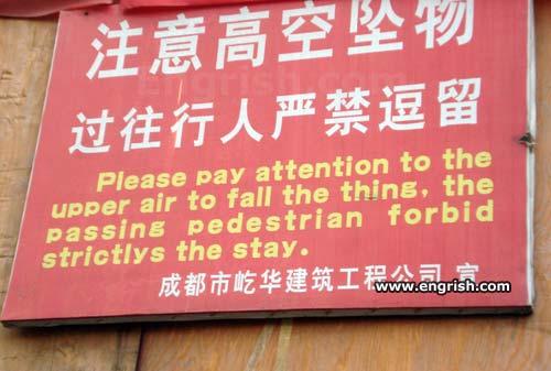 The upper air was heavy with Engrish that day, with pieces of broken grammar raining down on the pedestrians strictlys forbidden to stay.