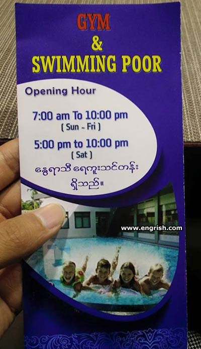 They misspelled “poorly”. Accomplished swimmers get exclusive use of the pool on Sundays.