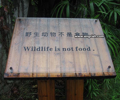 The sign should have said, “Wildlife is not food for human consumption.”