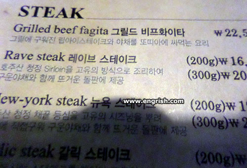For the Goth fans there is also a Raven Steak.