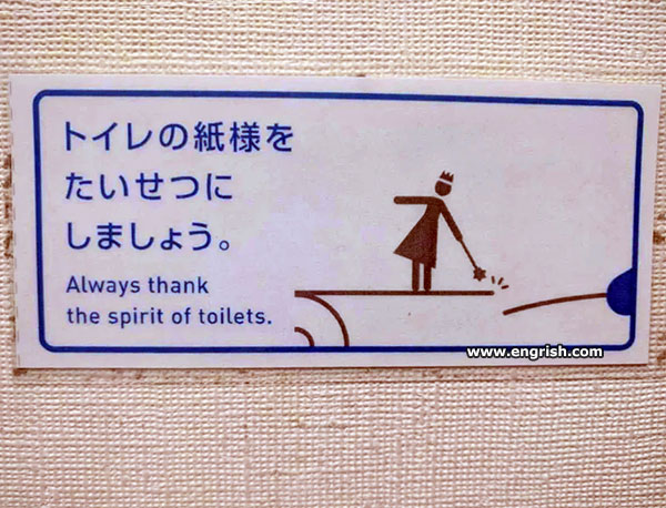 Could have been translated as: “let’s treat the toilet paper kindly”)